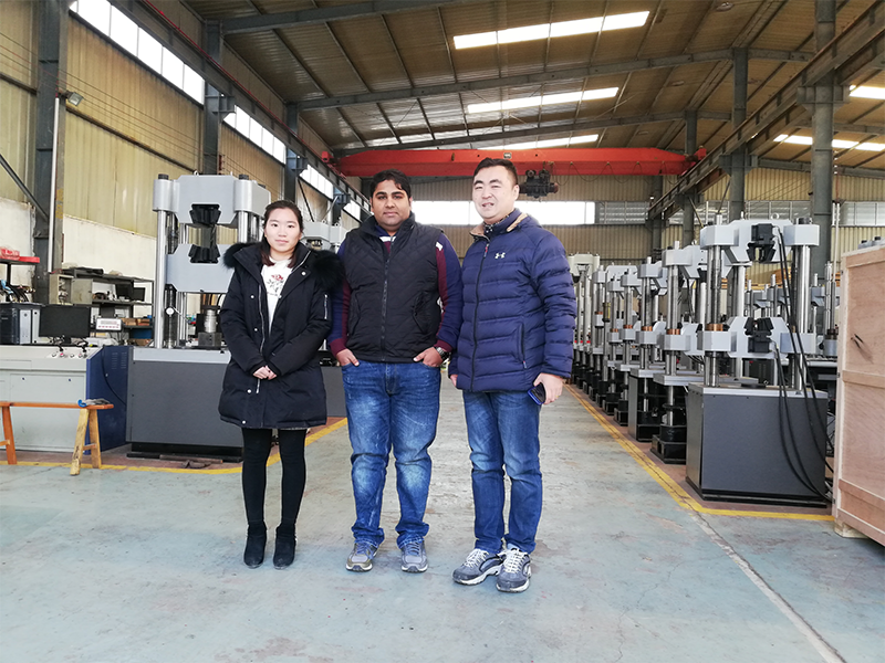 圖為國外客戶到濟南考察辰達試驗機,在生產車間內與辰達員工合影。產品獲得客戶稱贊,品質過硬,技術先進,達成合作協議。